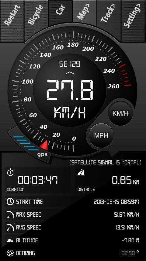 - Switch between auto speedometer and bicycle cyclometer.