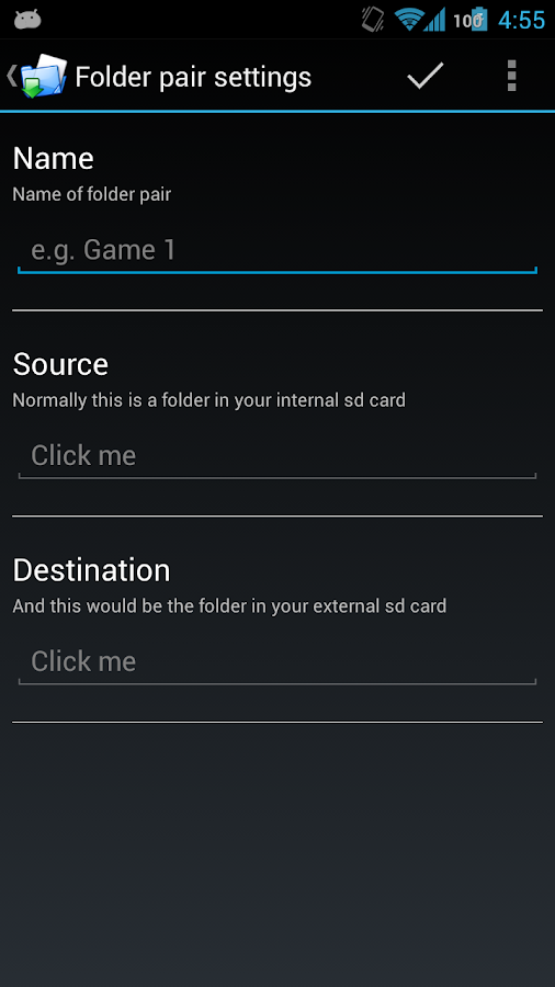 * Add an envelope pair. Source is the inward sdcard and end is your extsdcard